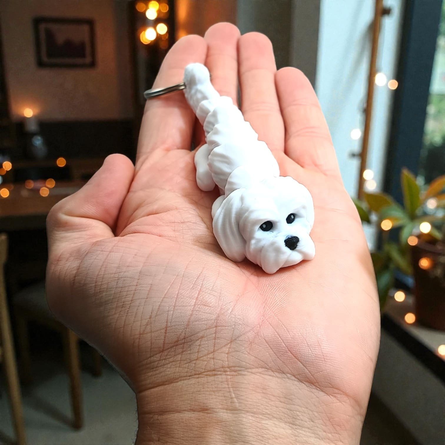 ⭐ Wyjątkowy, ruchomy brelok – Pies Maltańczyk