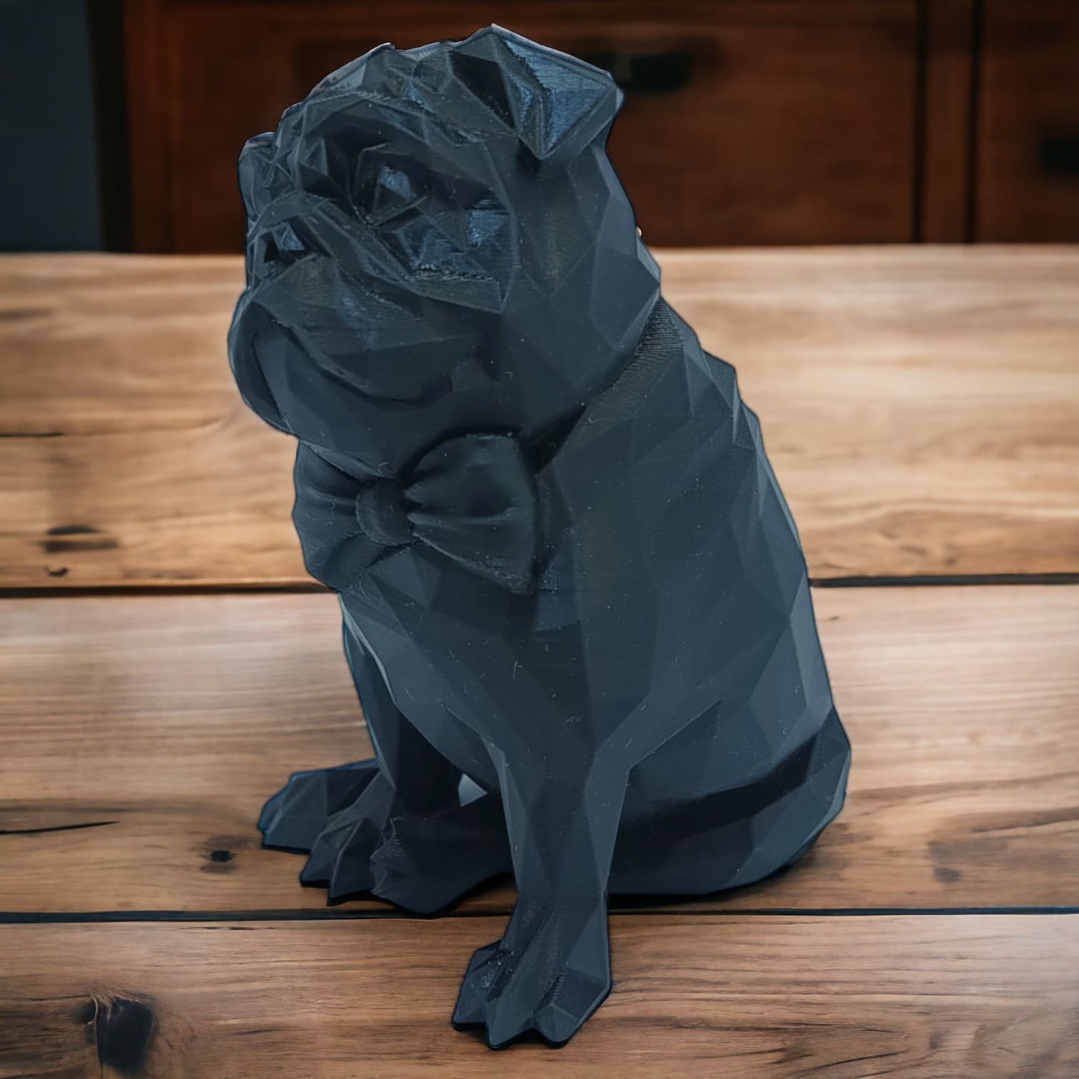⭐ Lekko błyszcząca figurka Mopsa w kolorze czarnym