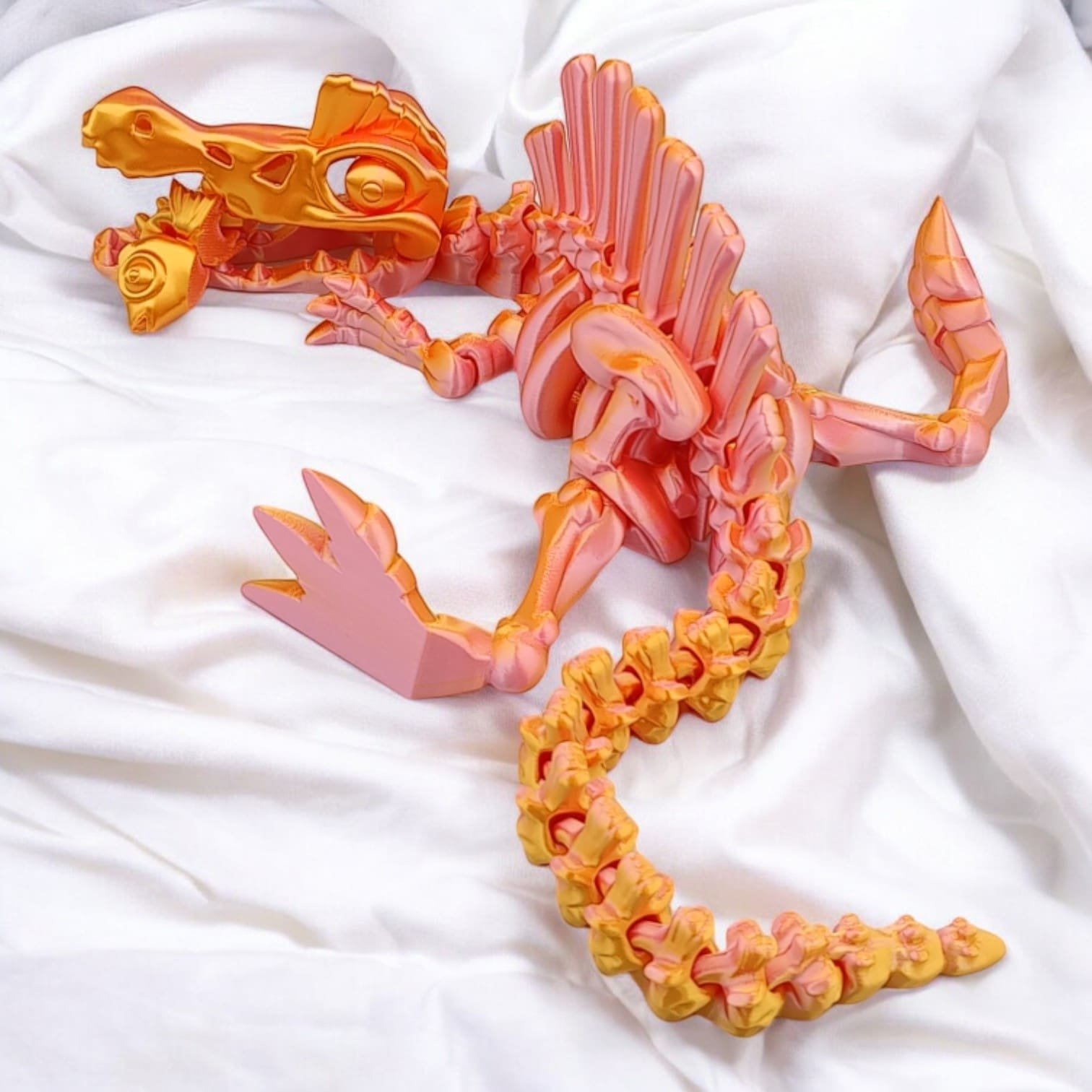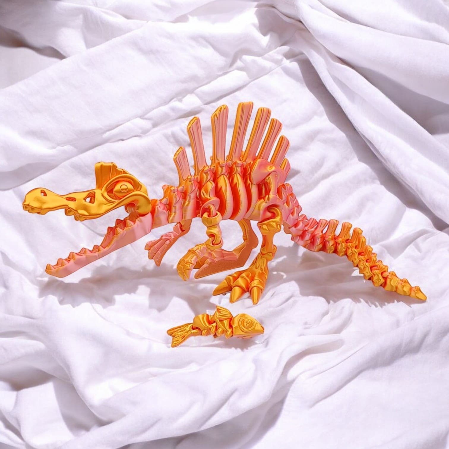 ⭐ Spinozaur, Spinosaurus przegubowy tzw. Flexi czyli w całości ruchomy wielokolorowy w wersji mini wraz z jego zdobyczą czyli rybką.