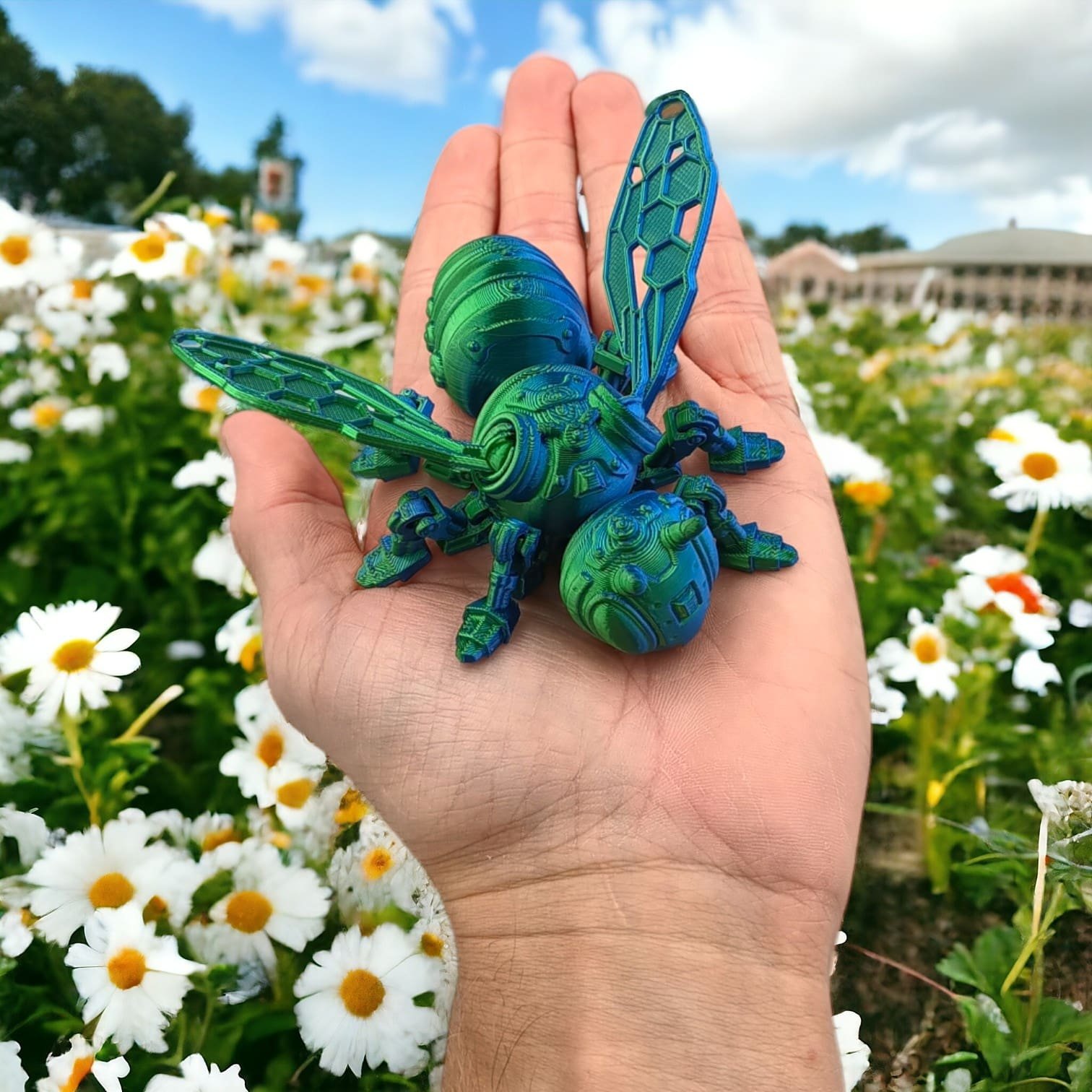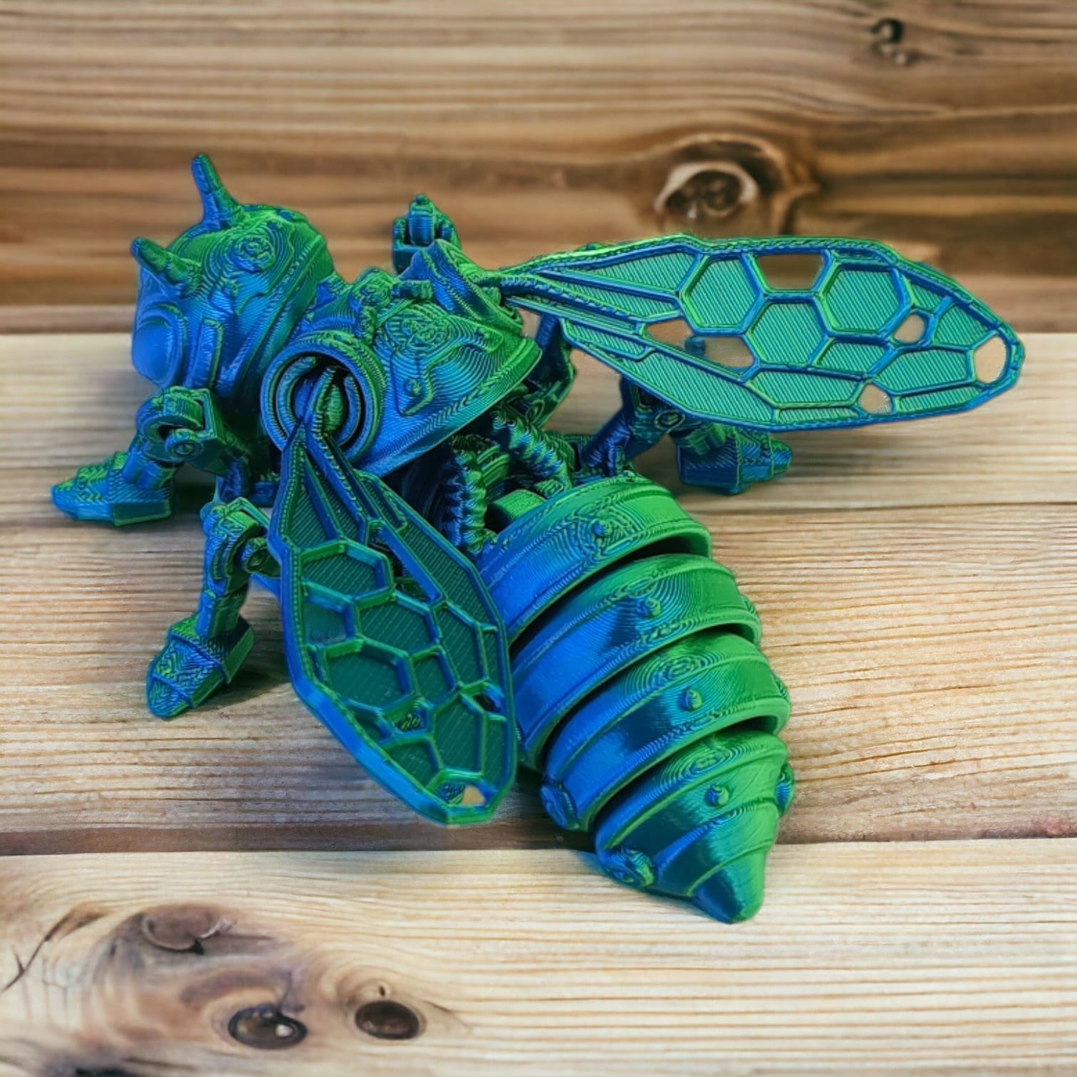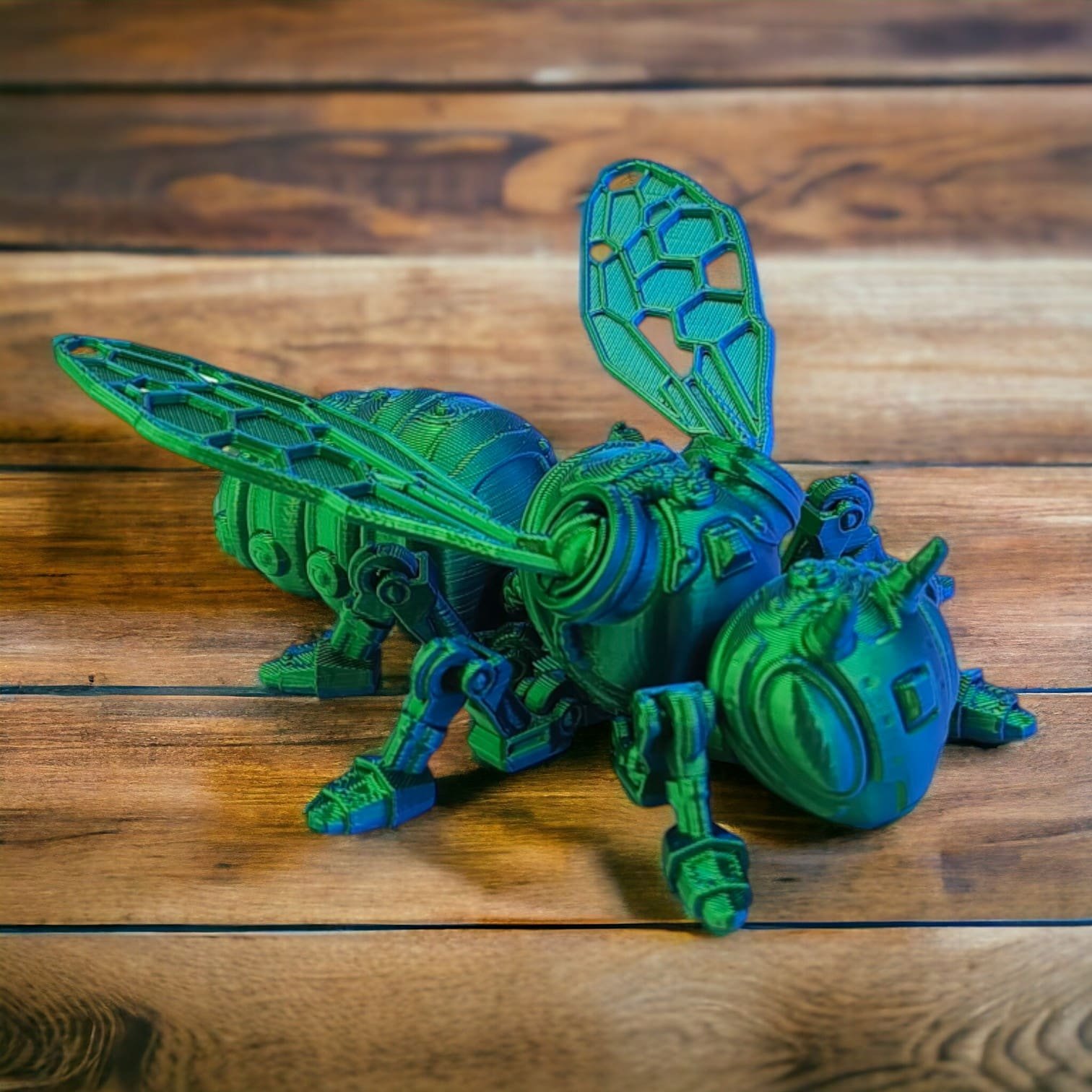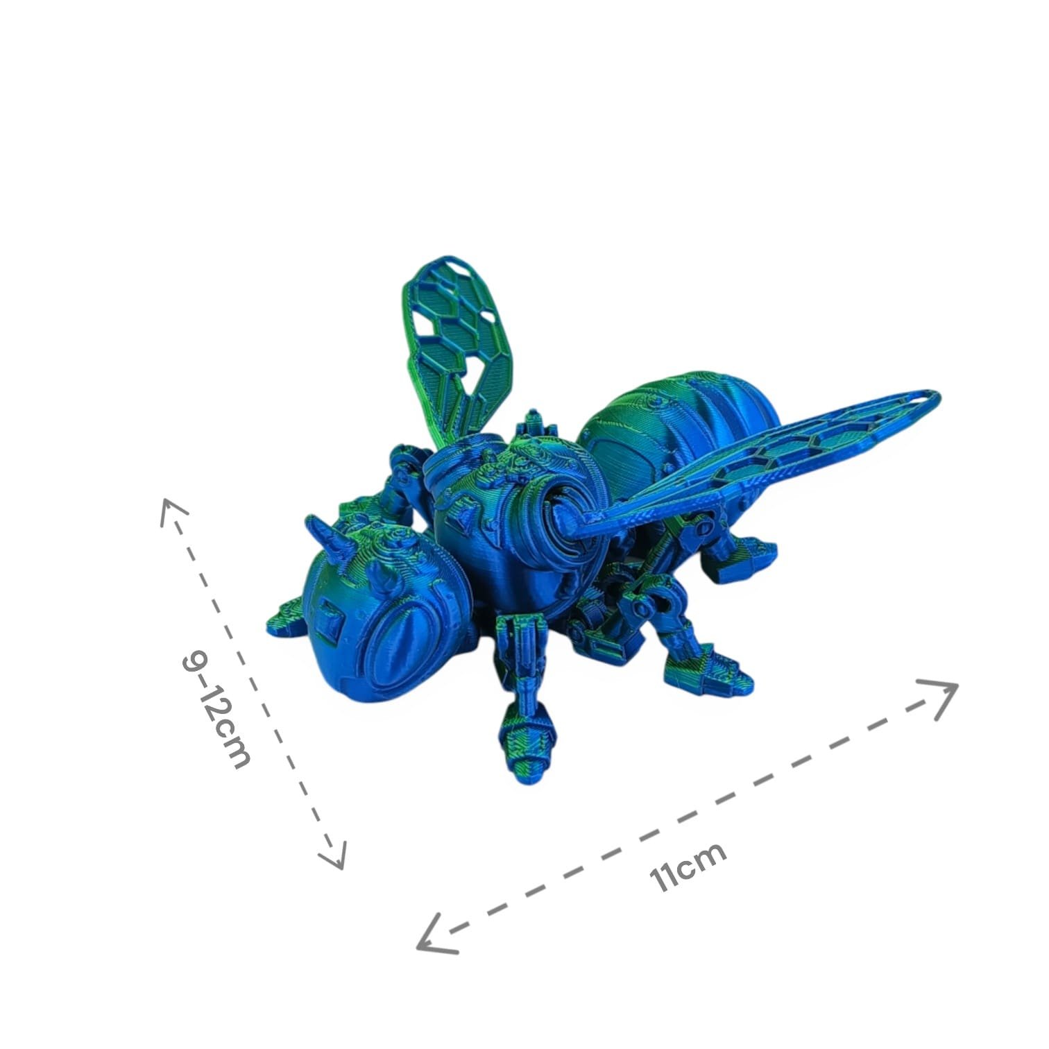 ✅ Skrzydła pszczoły, choć delikatne, mają wyraźnie mechaniczny wygląd, z misternymi wzorami, które sugerują zaawansowaną konstrukcję. Dzięki błyszczącym elementom, pszczoła sprawia wrażenie, że mogłaby się w każdej chwili unieść i ruszyć w kierunku swojego cyber-ulatu.