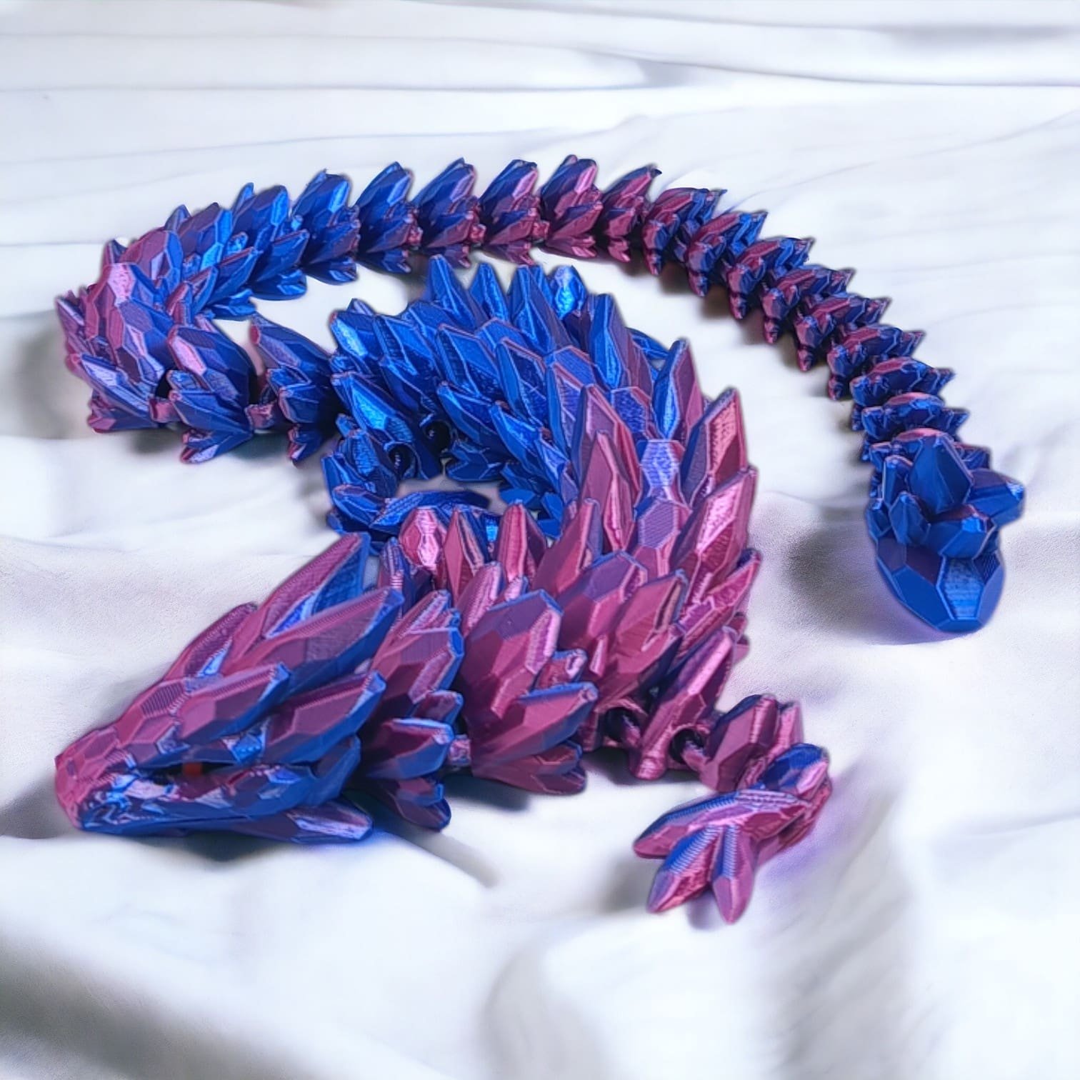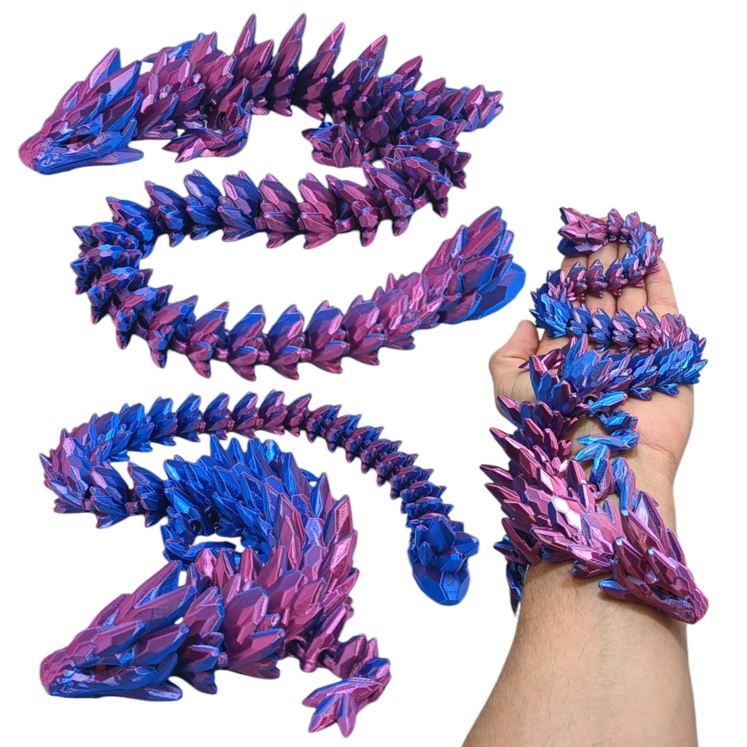 ➡️ Średni smok przegubowy to istota niezwykła, która emanuje delikatnym blaskiem wielokolorowych klejnotów, które składają się na jego ciało. O długości zaledwie 38.5 centymetra, wydaje się być jak magiczna klejnotowa figurka, która ożywa w twoich dłoniach.
