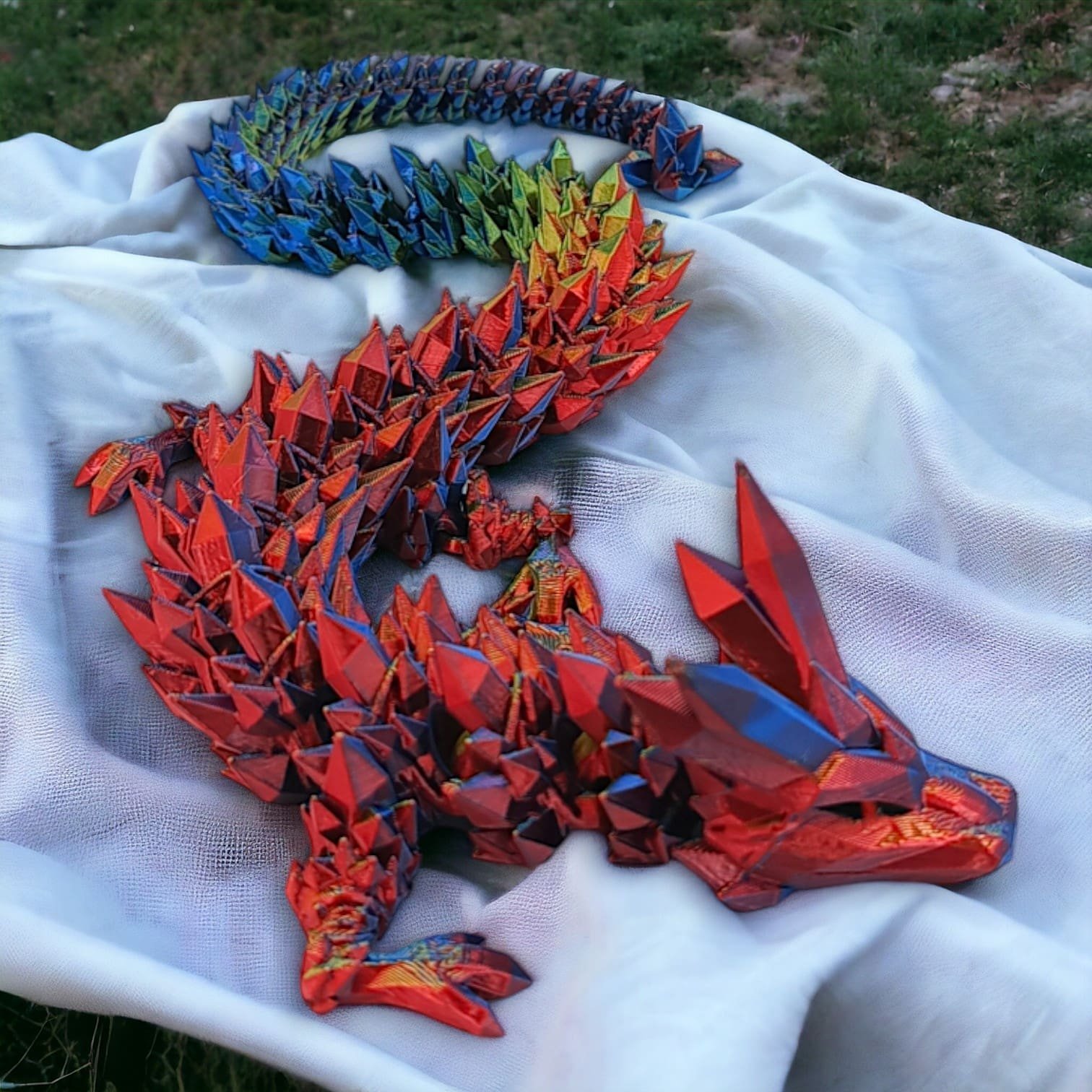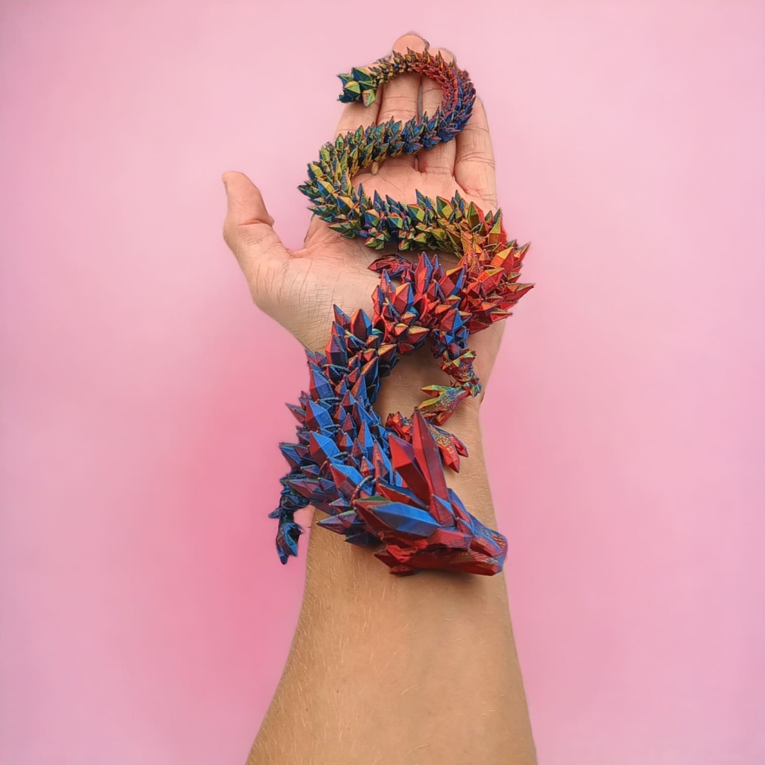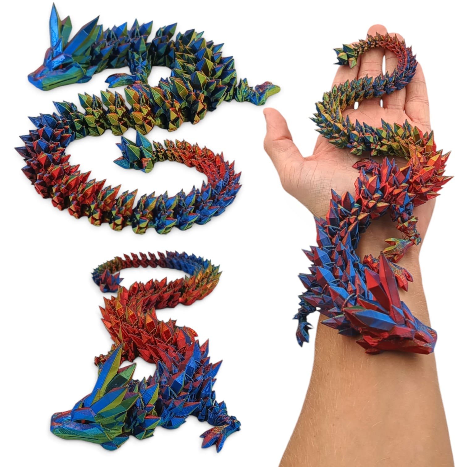 ⭐ Przegubowy, lśniący smok kryształowy tzw. Flexi, czyli w całości ruchomy. Wielokolorowy o długości 45cm