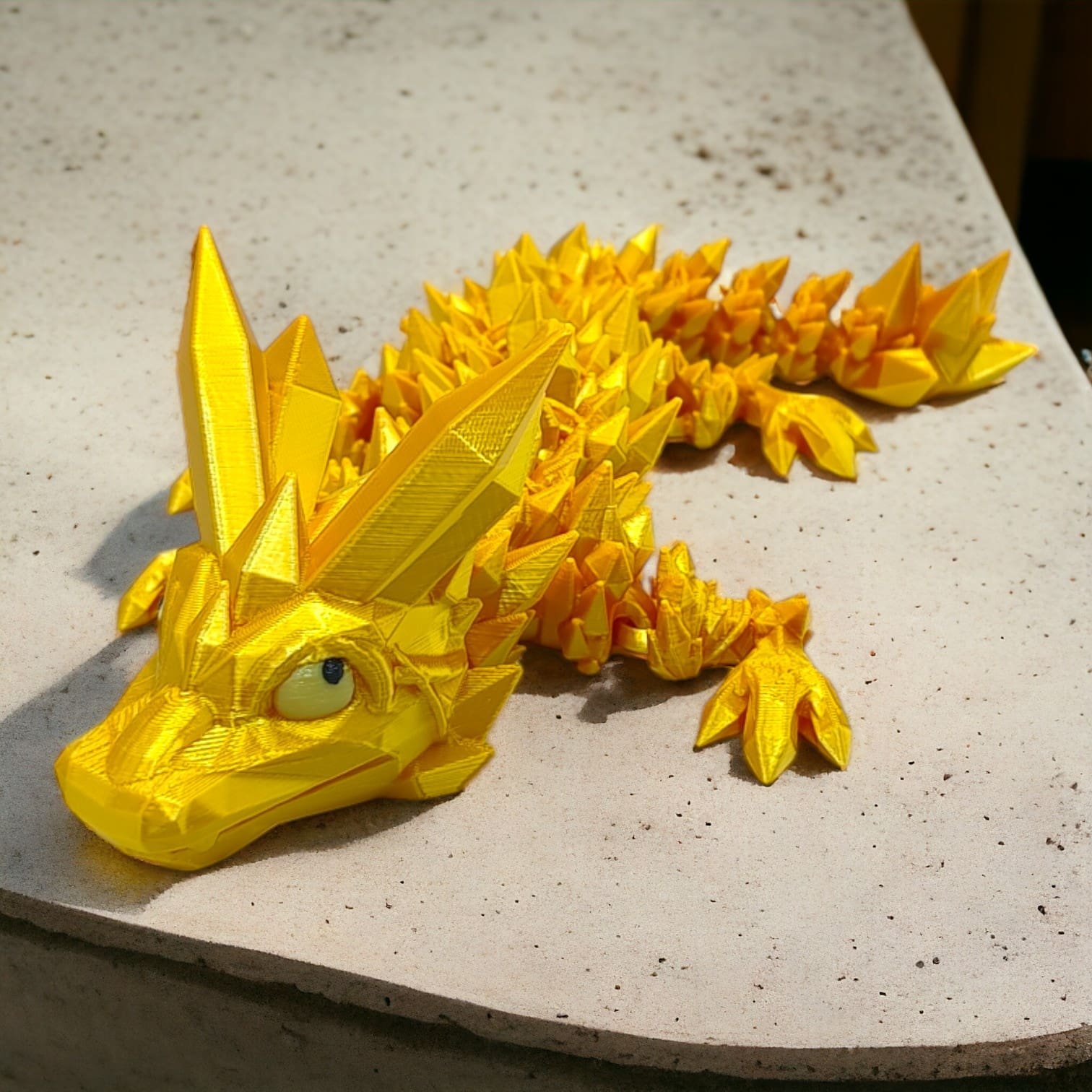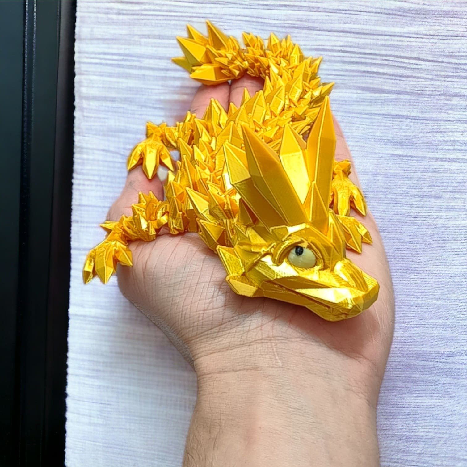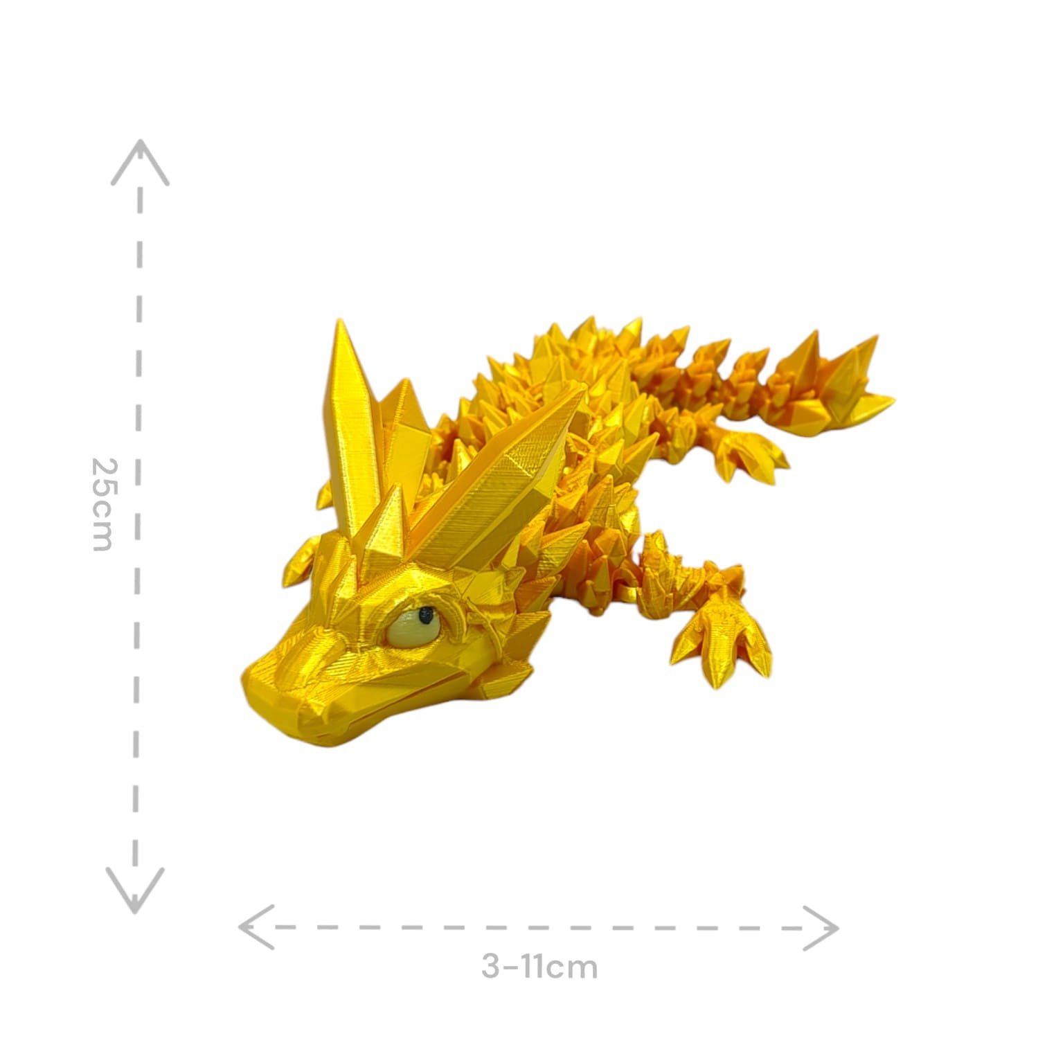 ⭐ Przegubowy Smok Baby tzw. Flexi, czyli w całości ruchomy w kolorze złotym o długości 25cm.
