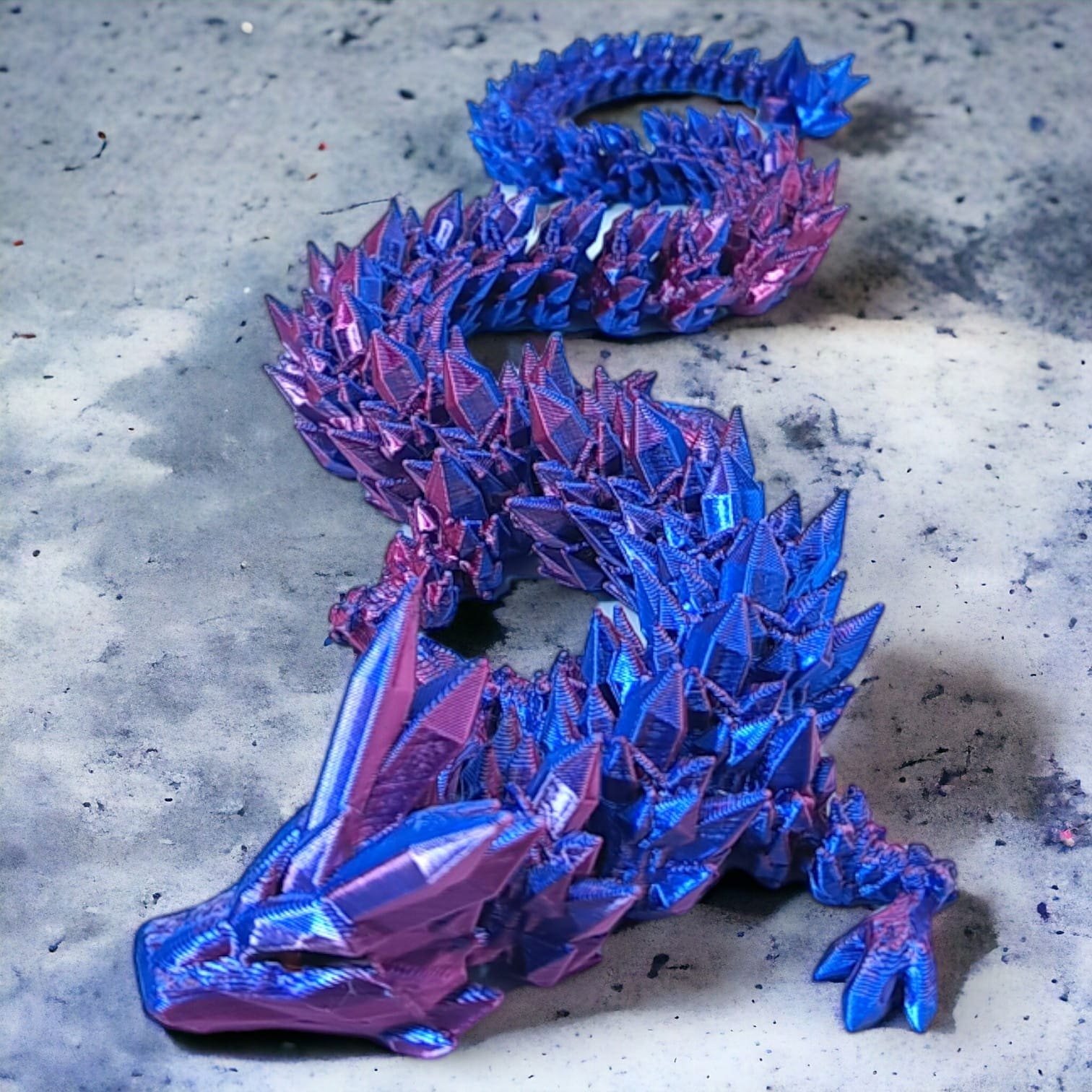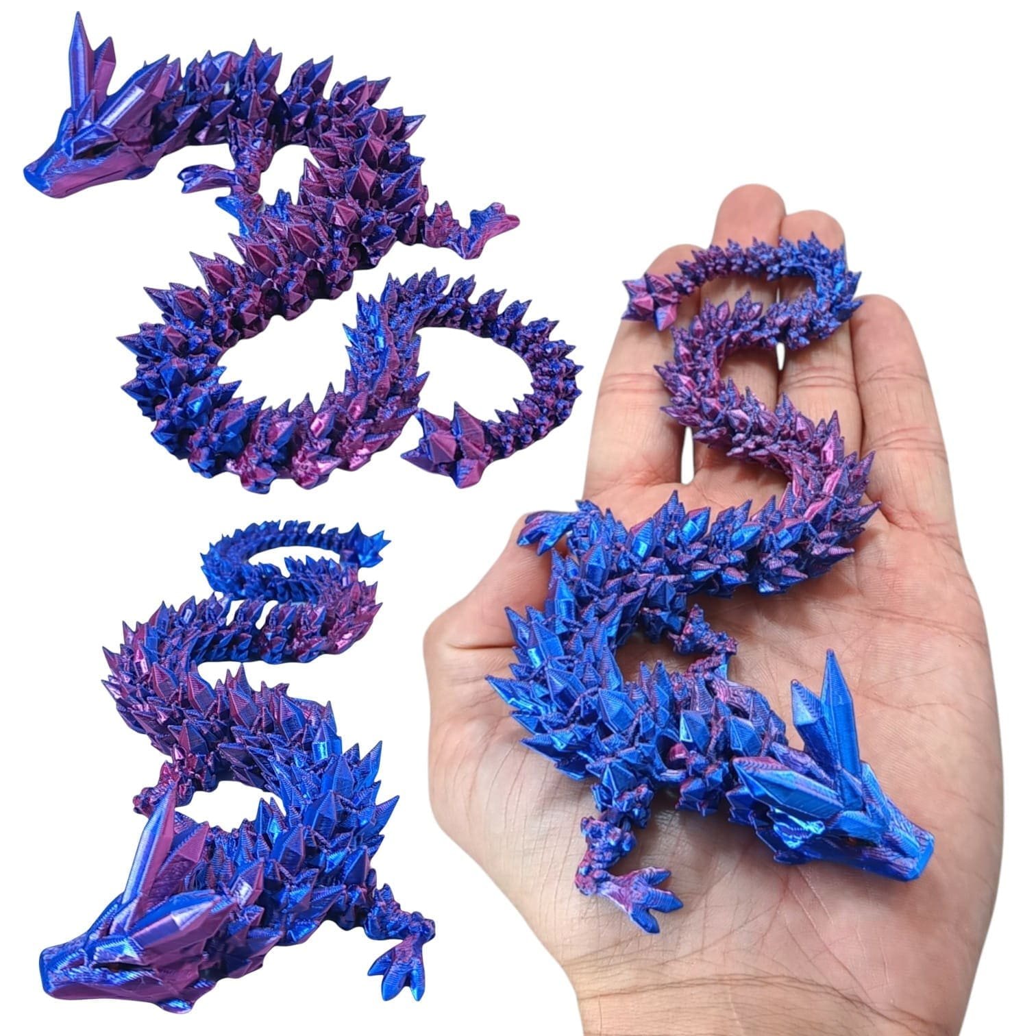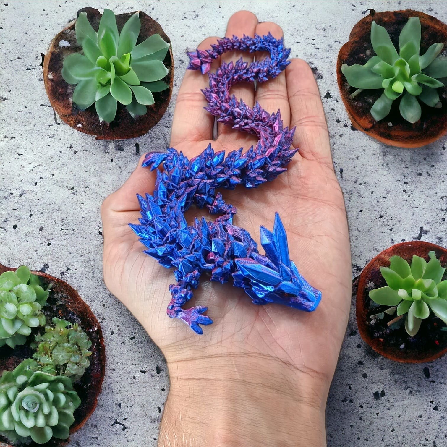 ➡️ Mały smok przegubowy to istota niezwykła, która emanuje delikatnym blaskiem kryształów niebieskich i fuksjowych, które składają się na jego ciało. Z długością zaledwie 30 centymetrów, wydaje się być jak magiczna klejnotowa figurka, która ożywa w twoich dłoniach.