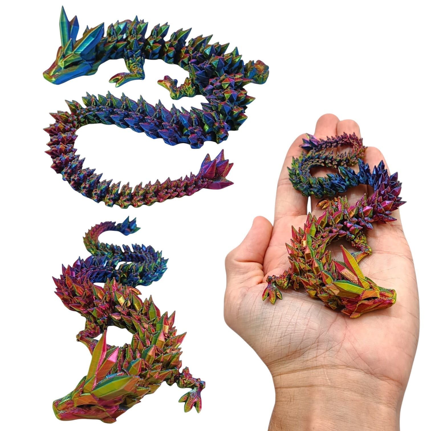 ✅ Mały smok przegubowy to istota niezwykła, która emanuje delikatnym blaskiem kryształów wielokolorowych, które składają się na jego ciało. O długości zaledwie 30 centymetrów, wydaje się być jak magiczna klejnotowa figurka, która ożywa w twoich dłoniach.