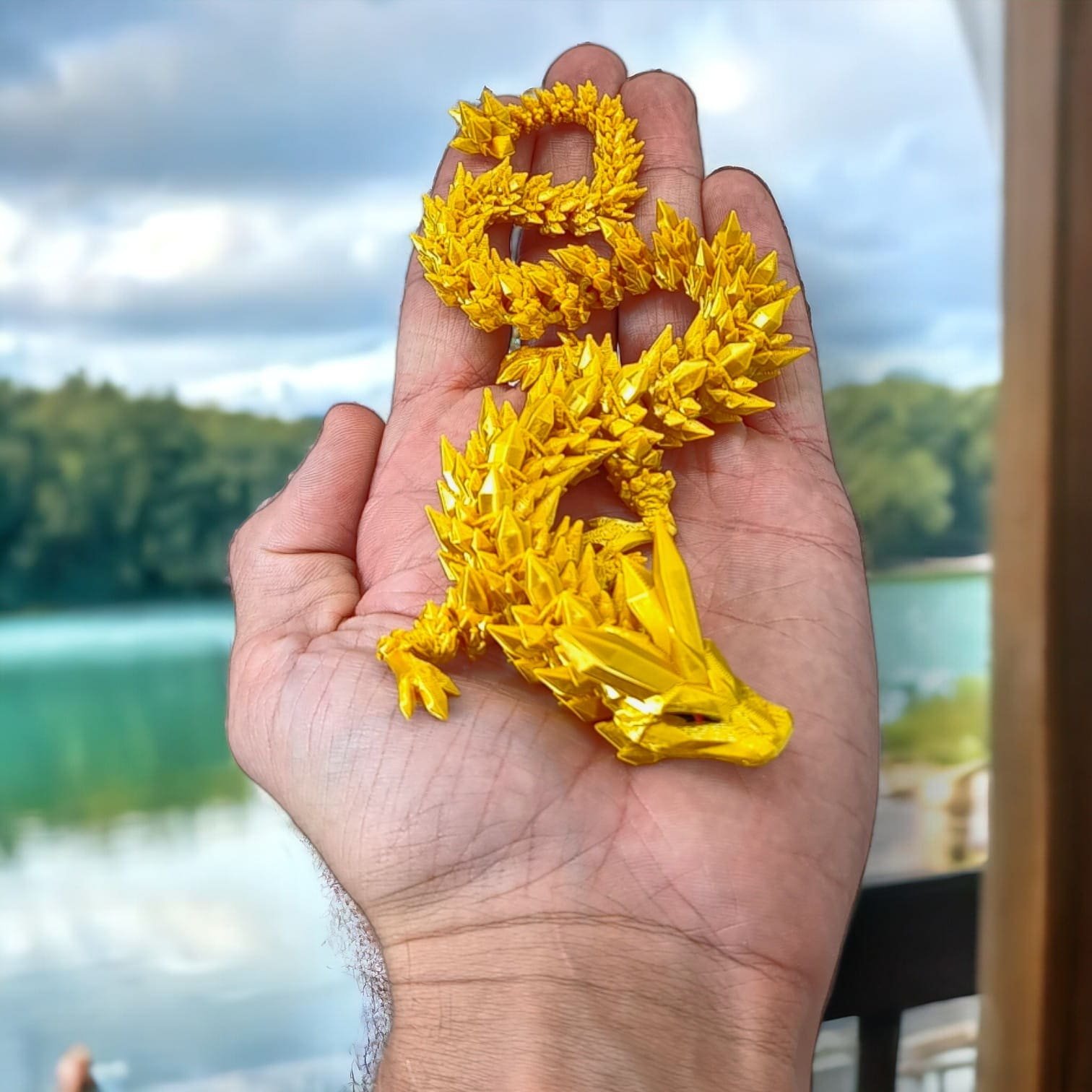 ⭐ Przegubowy Smok tzw. Flexi, czyli w całości ruchomy o długości 30cm w kolorze złotym