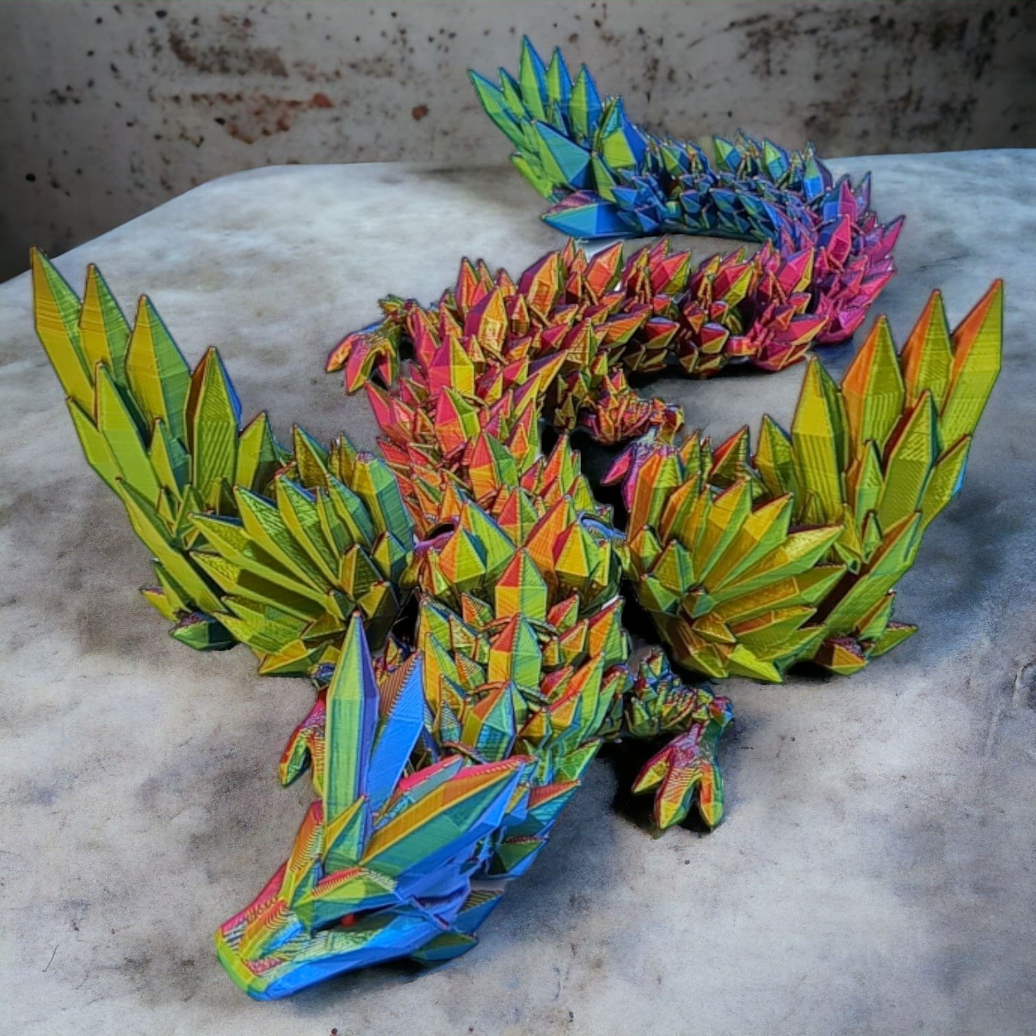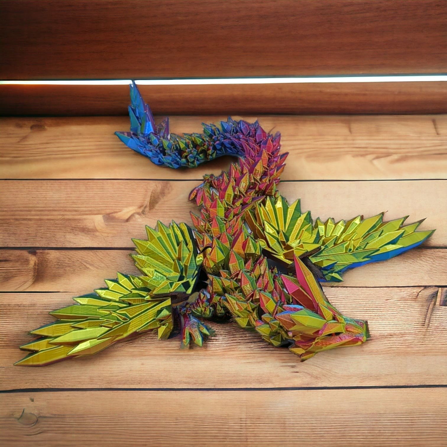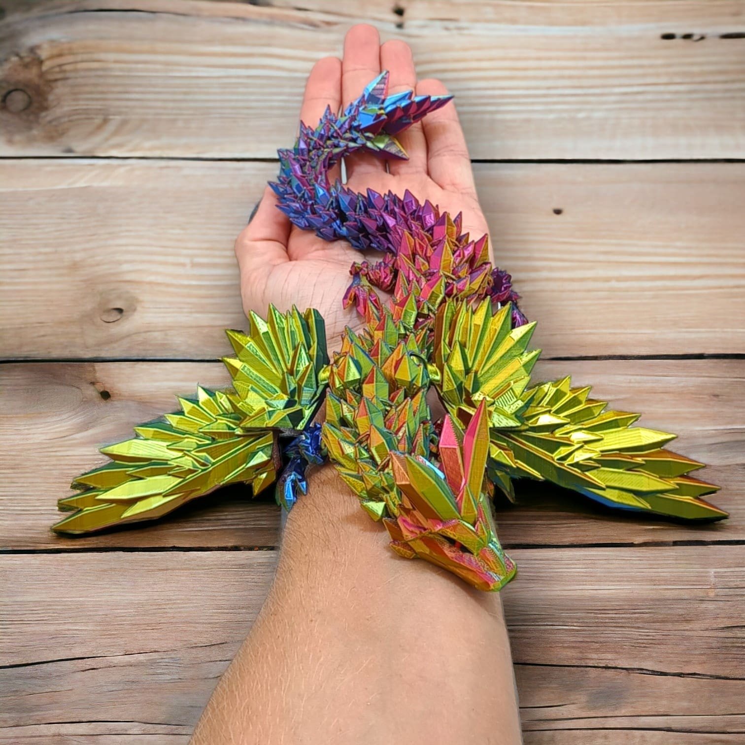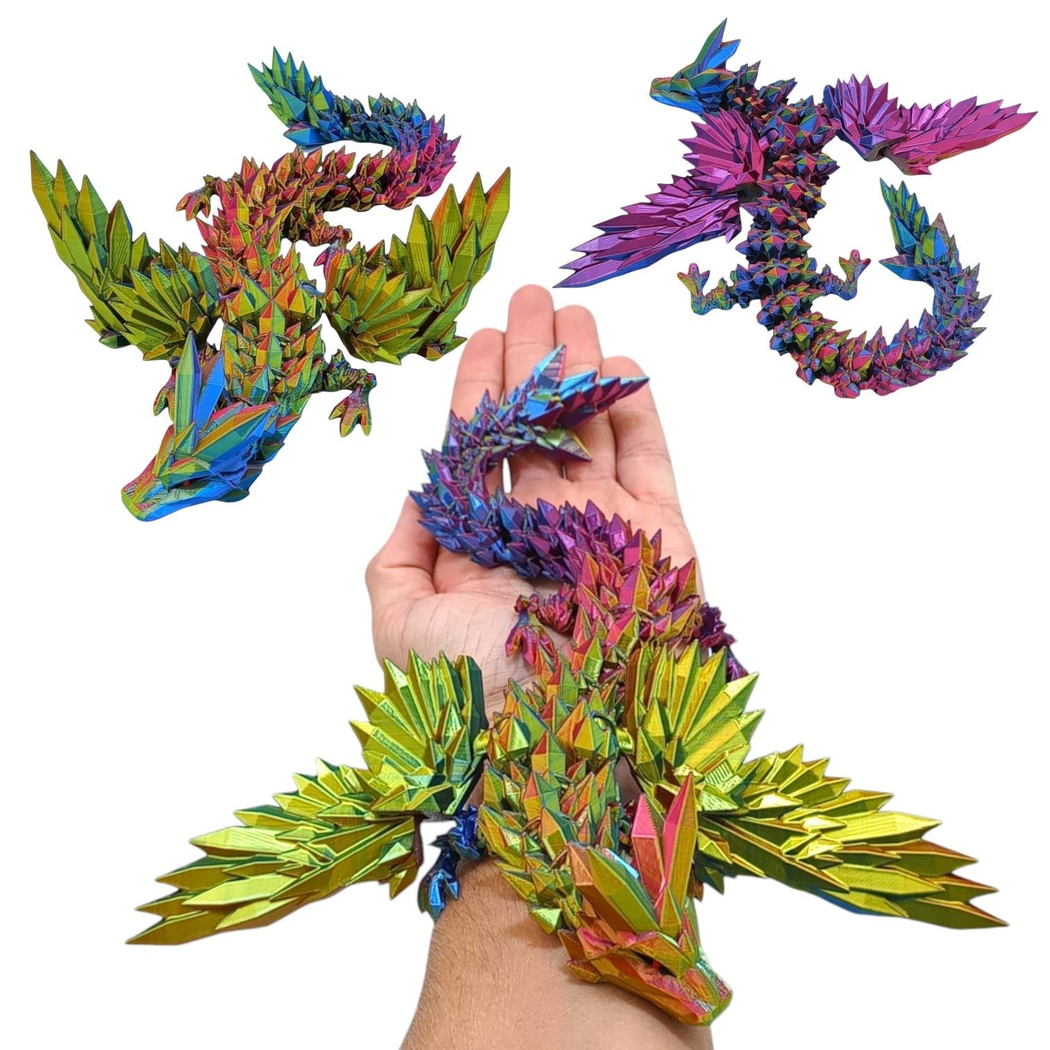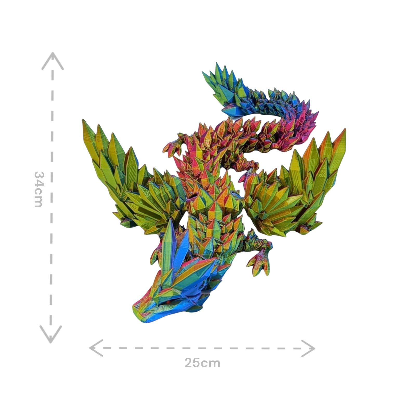 ⭐ Przegubowy Smok Kryształowy ze skrzydłami tzw. Flexi, czyli w całości ruchomy o długości 34cm, wielokolorowy