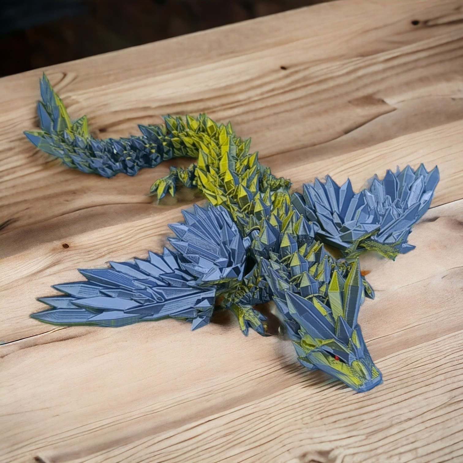 Kryształowy Smok ze Skrzydłami Midi, 34cm Długość, Figurka Przegubowa