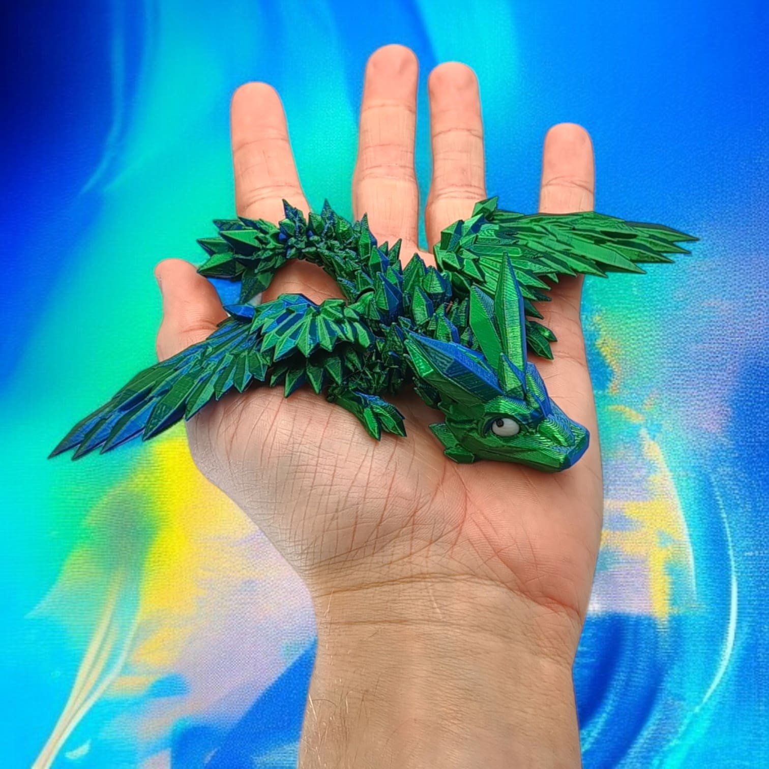 ➡️ Mały, przegubowy smok w wersji baby ze skrzydłami i wyjątkowymi oczami to istota niezwykła, która emanuje delikatnym blaskiem kryształów wielokolorowych, które składają się na jego ciało. O długości zaledwie 14 centymetrów, wydaje się być jak magiczna klejnotowa figurka, która ożywa w twoich dłoniach.