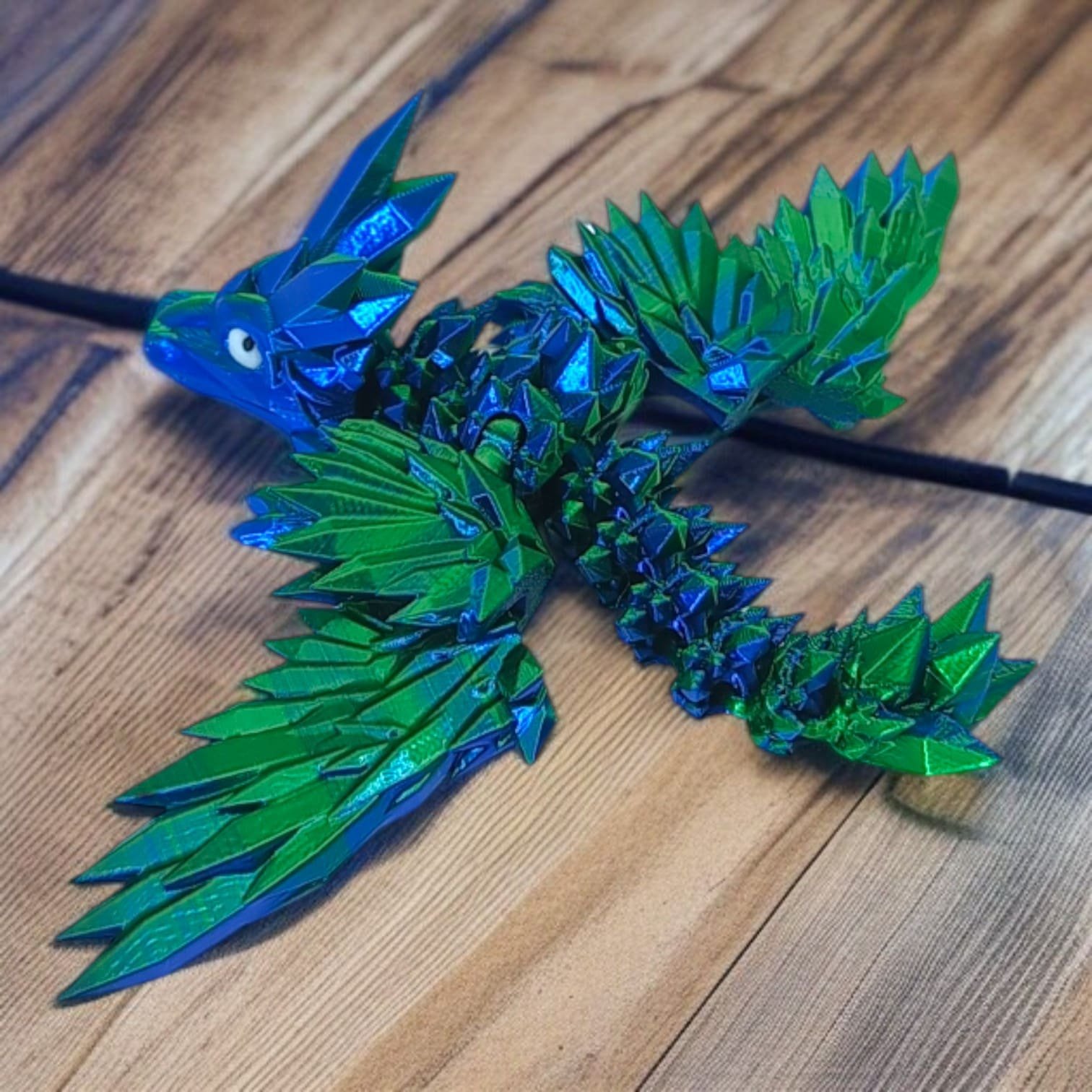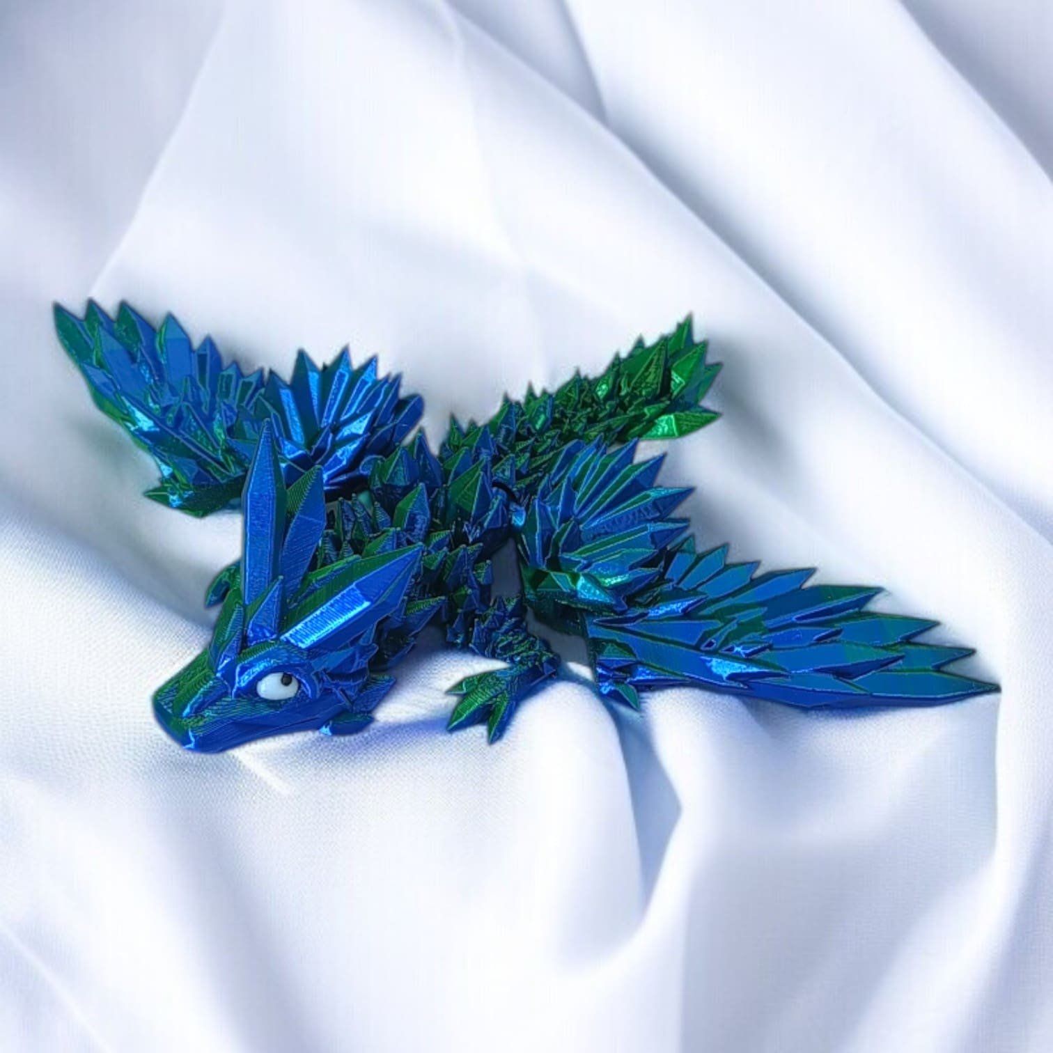 Smok Kryształowy Baby ze Skrzydłami Mini, 14cm Długość, Figurka Przegubowa
